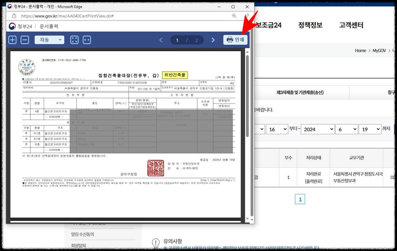 정부24 건축물대장 무료 열람하기