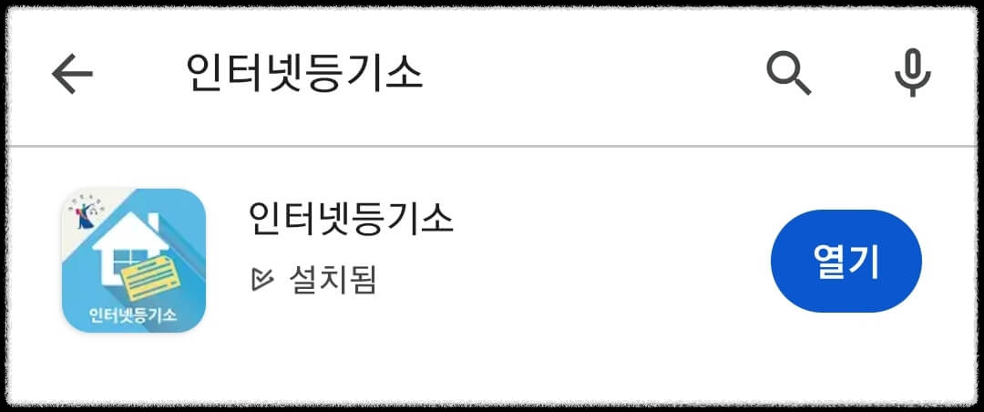 1. 플레이스토어에서 '인터넷등기소' 앱을 검색한 후에 설치를 합니다.